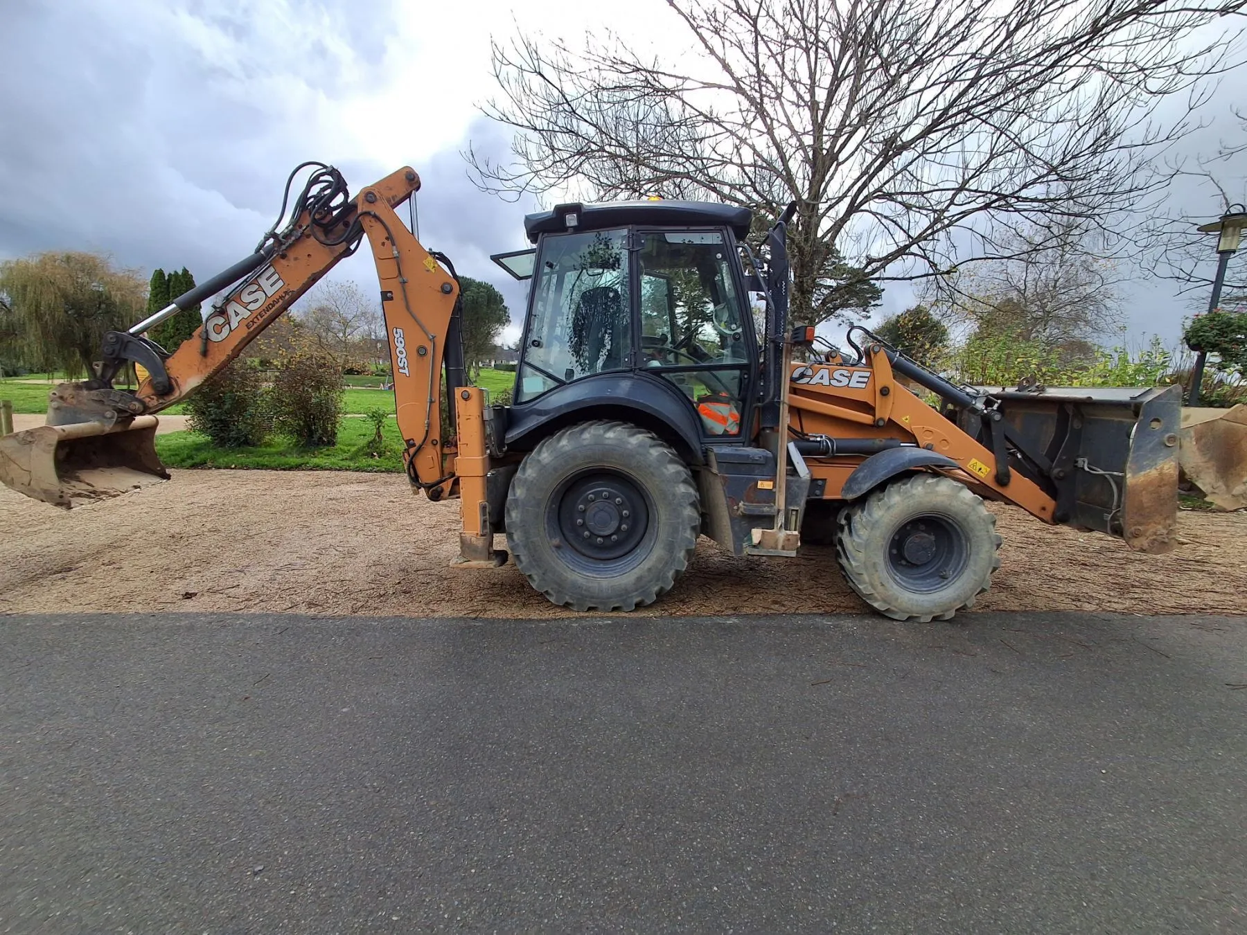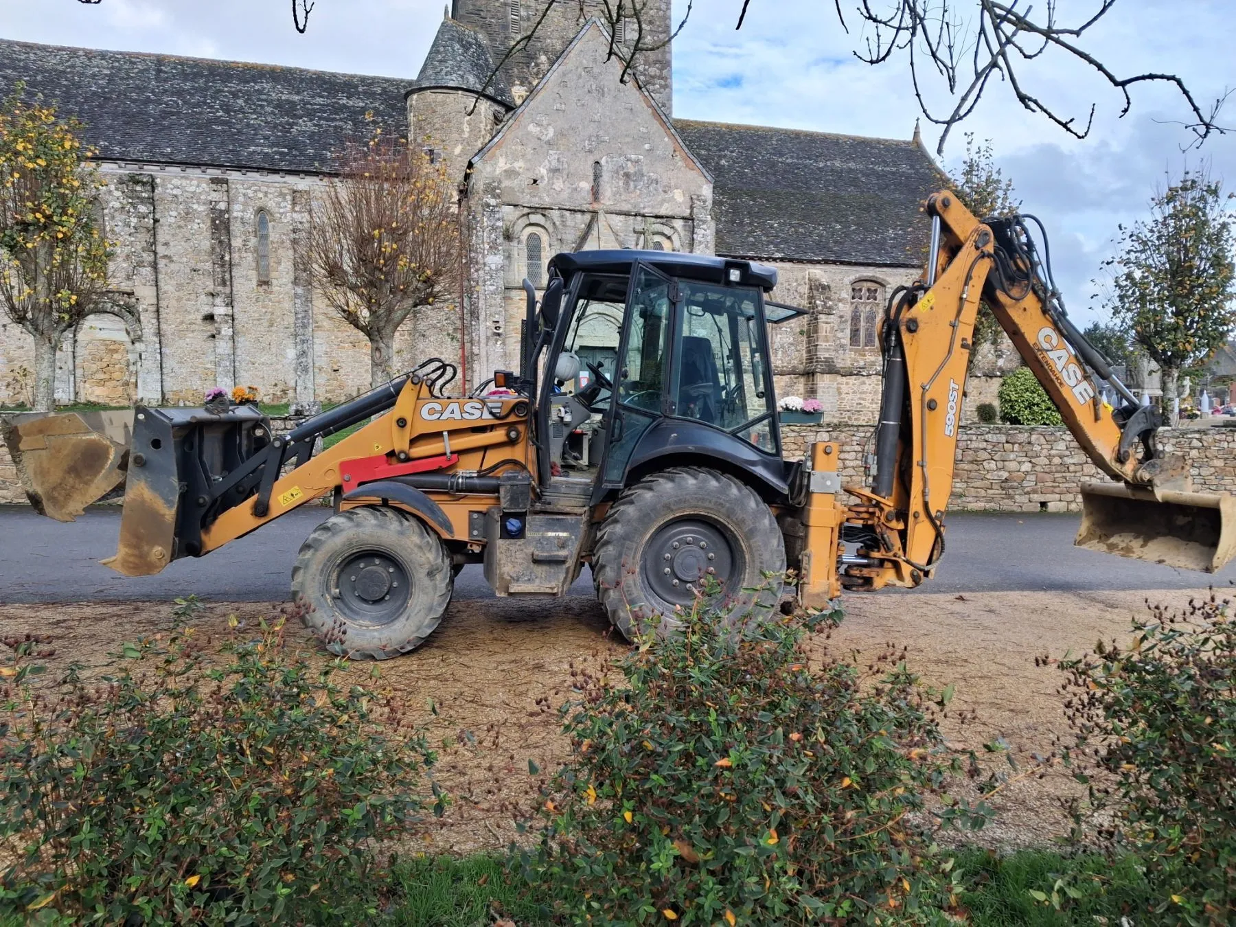 Tractopelle CASE 580ST de 2019 8308 heures *5 godets : devant godet drop ; derrière: 4 godets 30; 45;60;80* TBE elle a le joystic